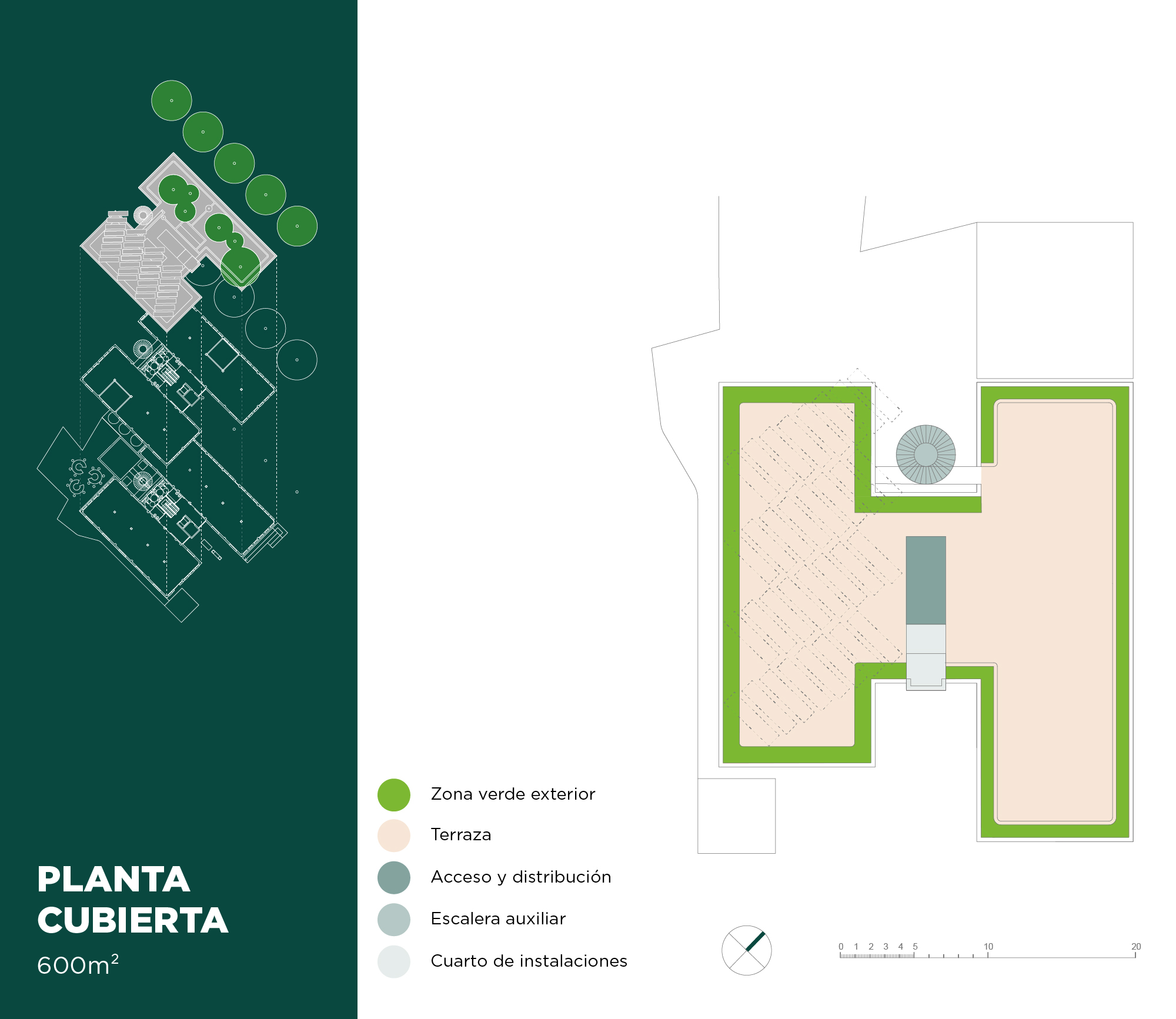 Es una intervención sencilla, sin ruido, concisa y minuciosa. Una propuesta natural y con psicología afectiva: los jardines penetran en los espacios de trabajo y la arquitectura se plantea como natural e inclusiva, tanto por el contexto del paisaje existente como por los nuevos espacios naturales proyectados. Es un proyecto flexible, configurable y con la posibilidad de multiprogramación de actividades. Una terraza en la cubierta, a la altura de la copa de los árboles, es un espacio que no es del cielo ni de la tierra, como los columpios y las nubes, es el lugar de las ideas y ese lugar es un jardín
